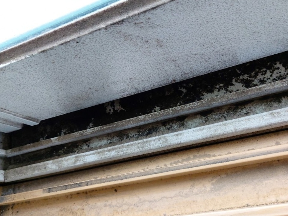 창틀에 쌓여 딱딱하게 굳은 이물질과