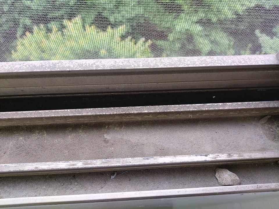 그리고 창틀과 방충망에 가득한 먼지를 제거합니다.