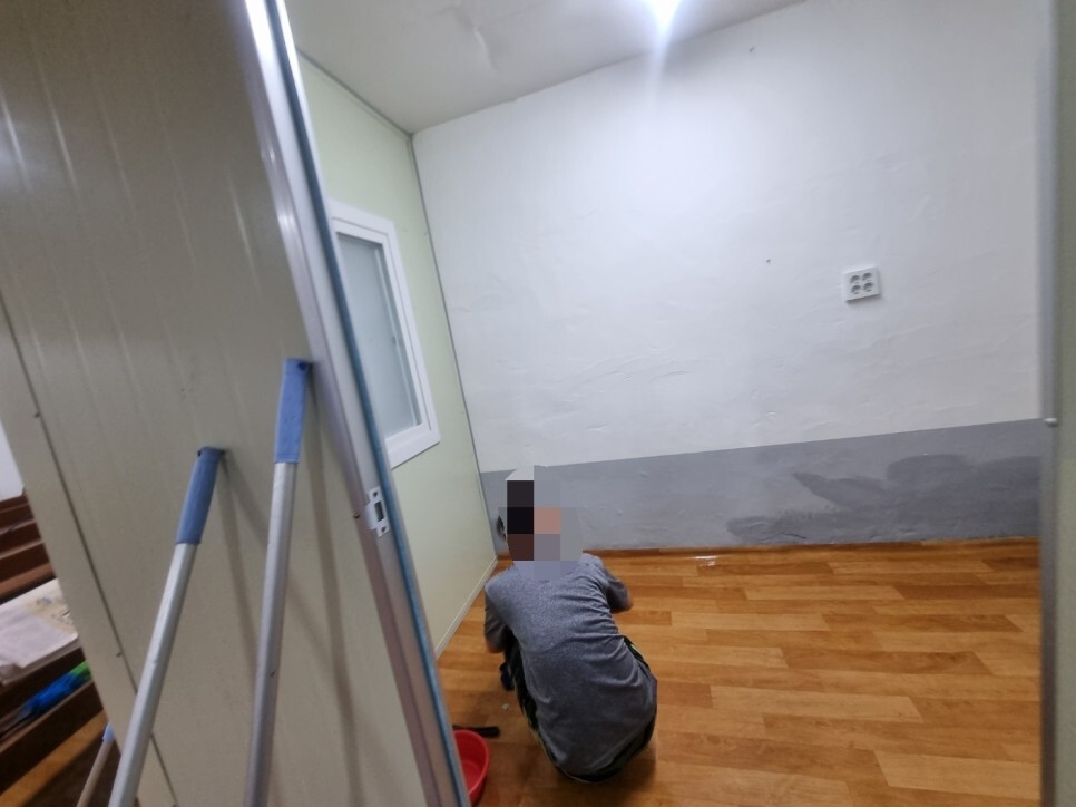 바닥도 세제를 도포 후 수차례 반복해서