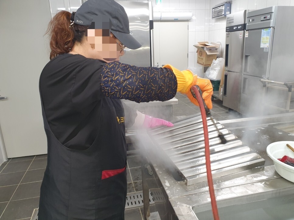 그을음 등 전용약품을 분사 후 청소도구를 이용해