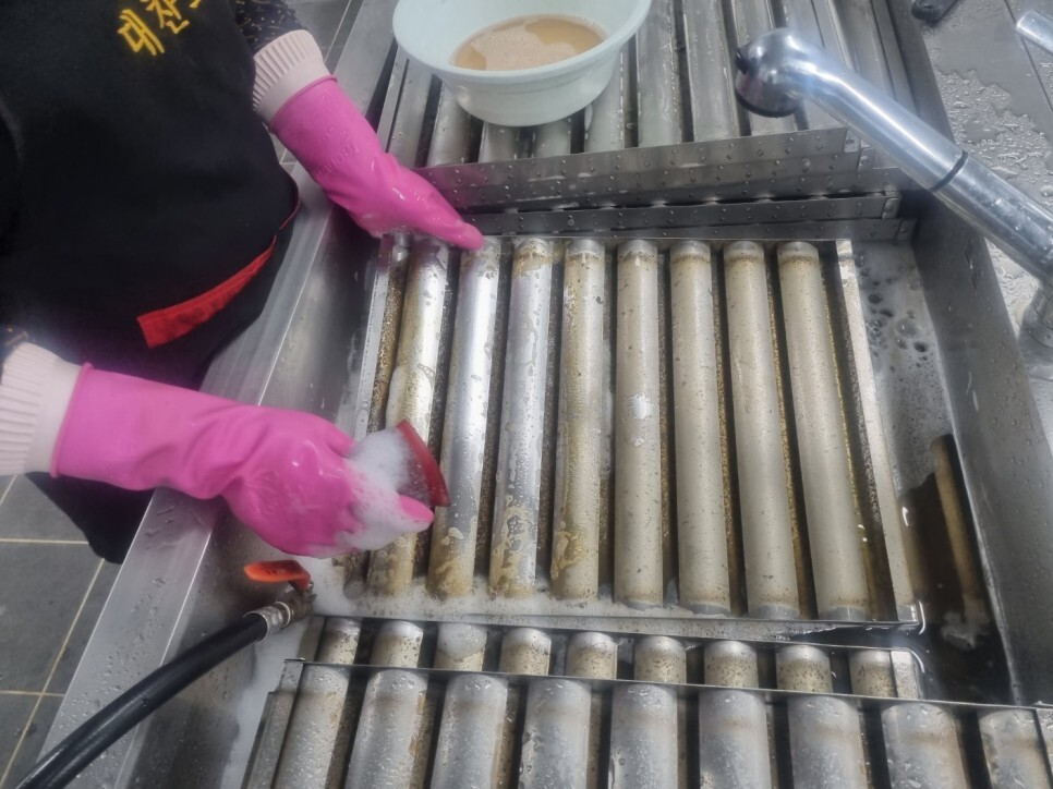 세척 후 필터 사이사이에 있던
