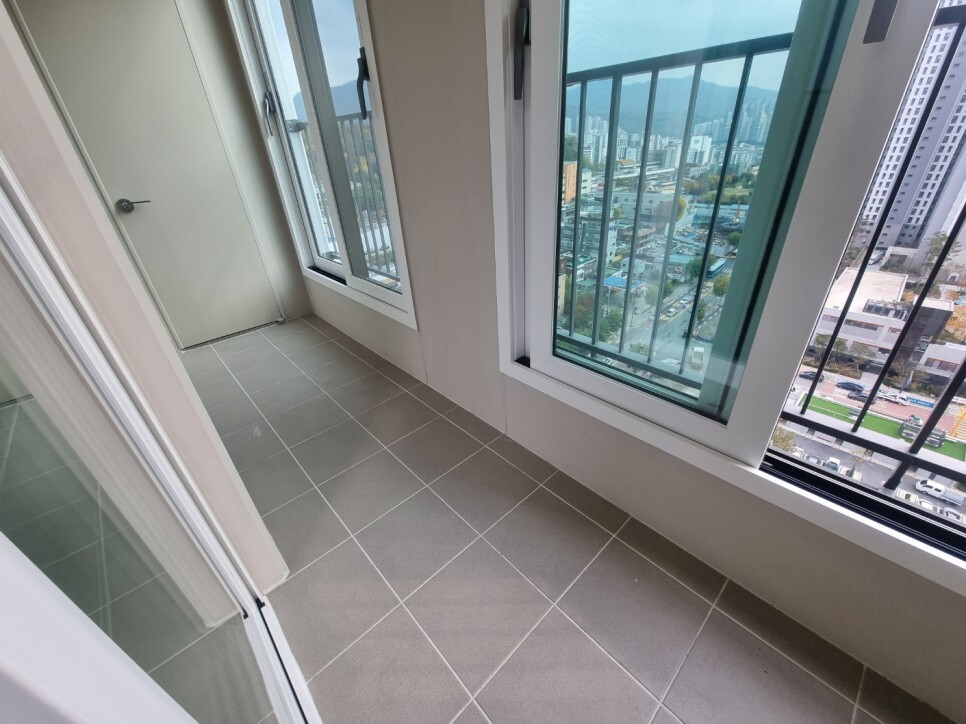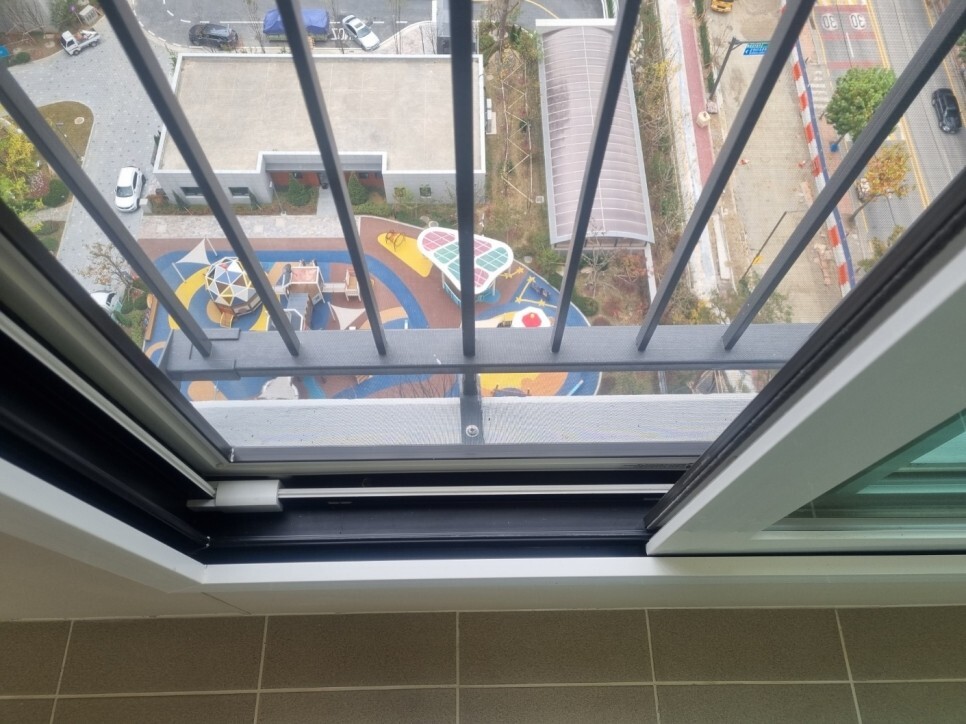 외부 베란다에 창틀과 방충망이있는데