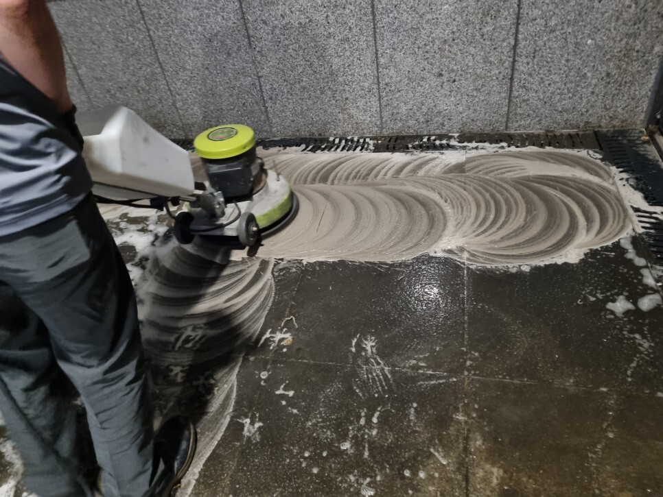 바닥면의 찌든때. 묵은때. 기름때 등을