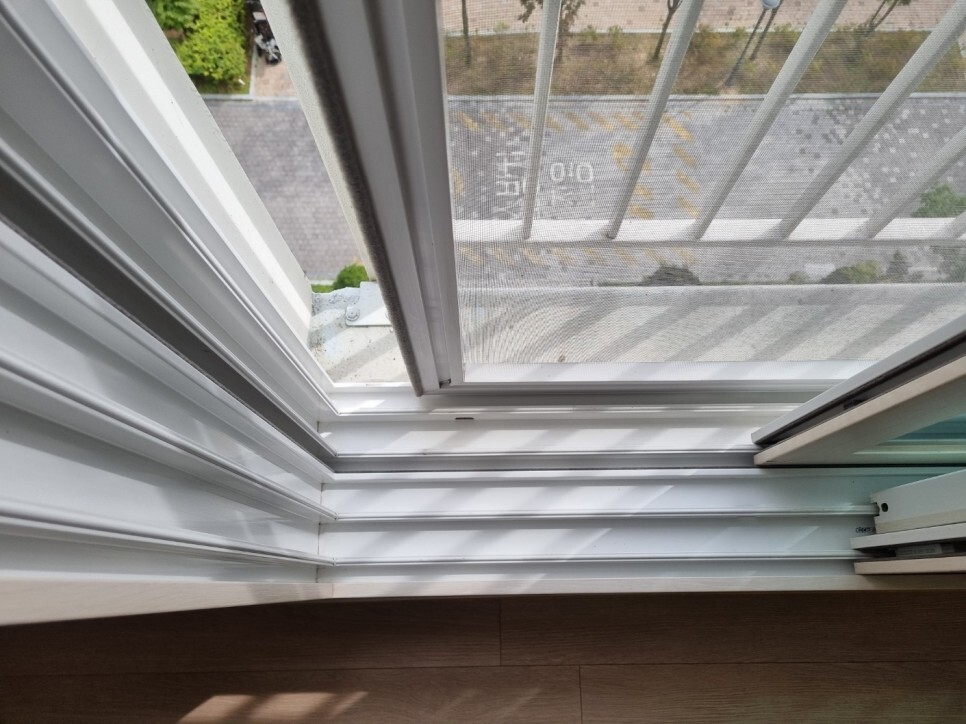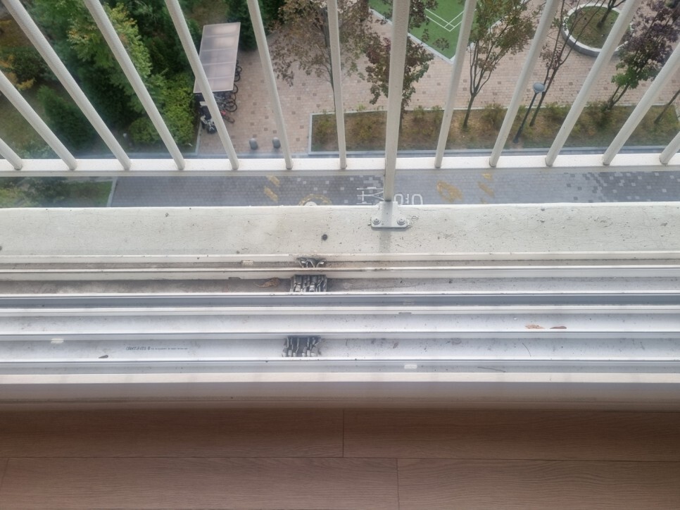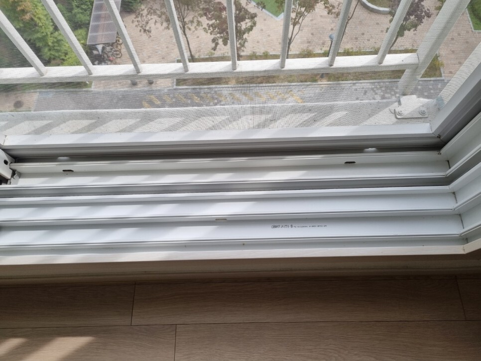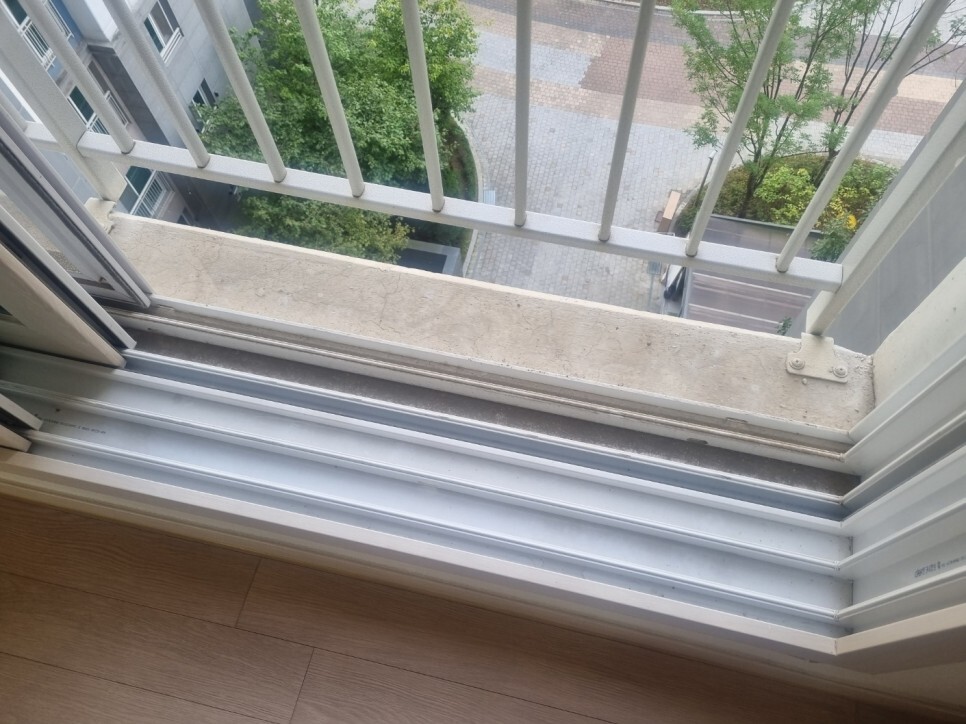 창틀에 쌓여 딱딱하게 굳은 이물질은