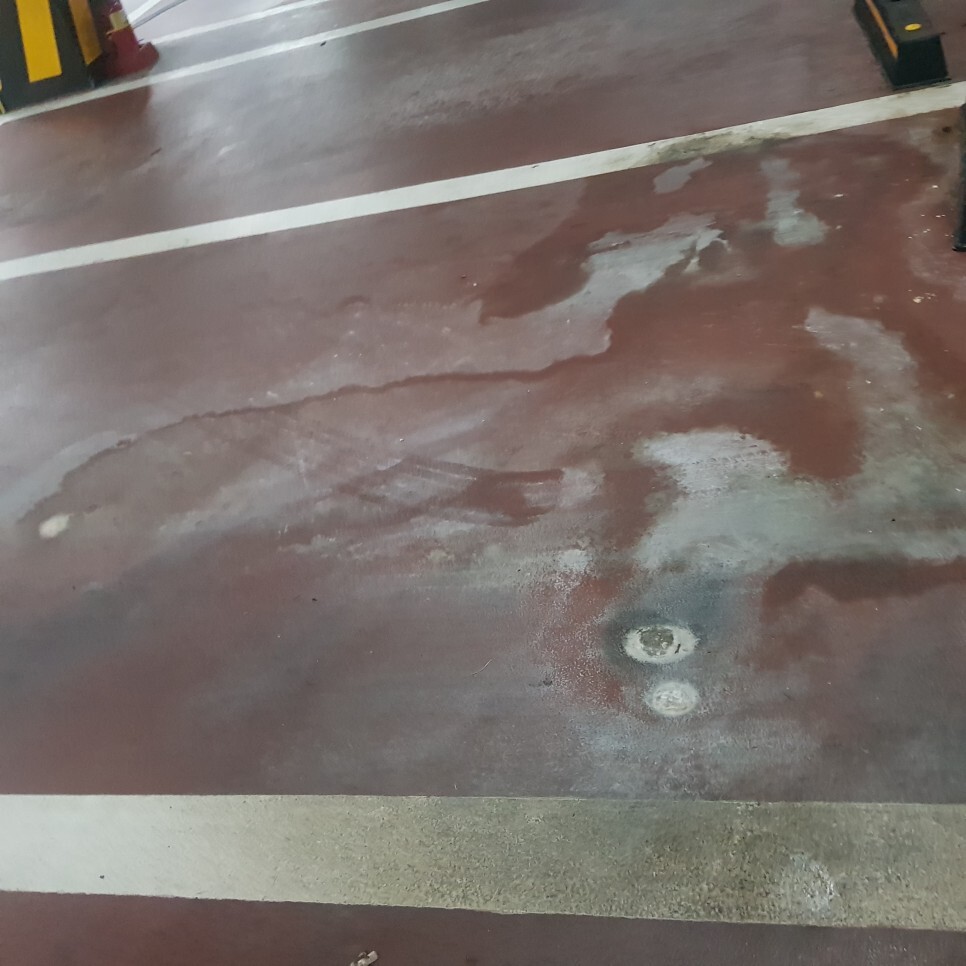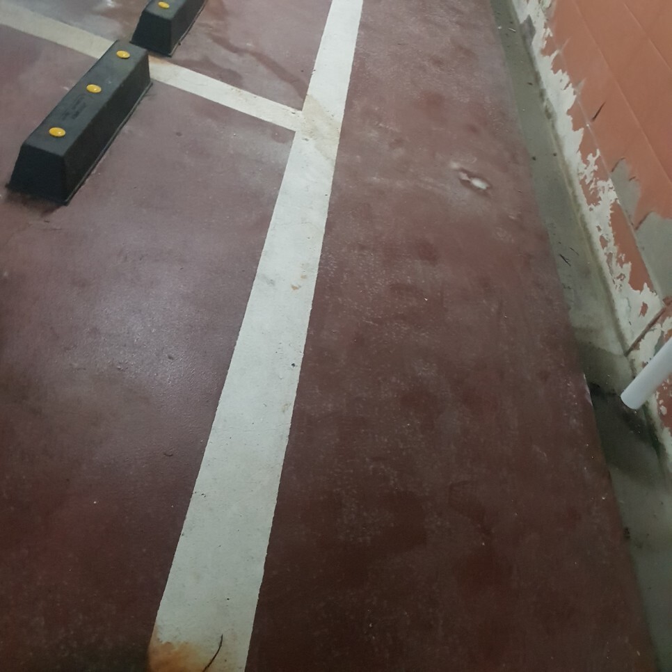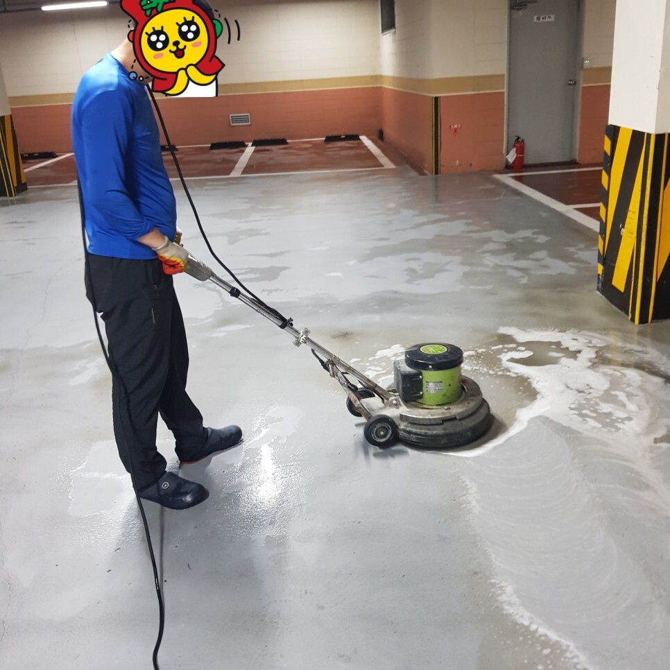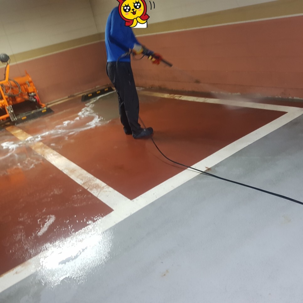 5층의 구축건물 주차장 바닥세척청소,